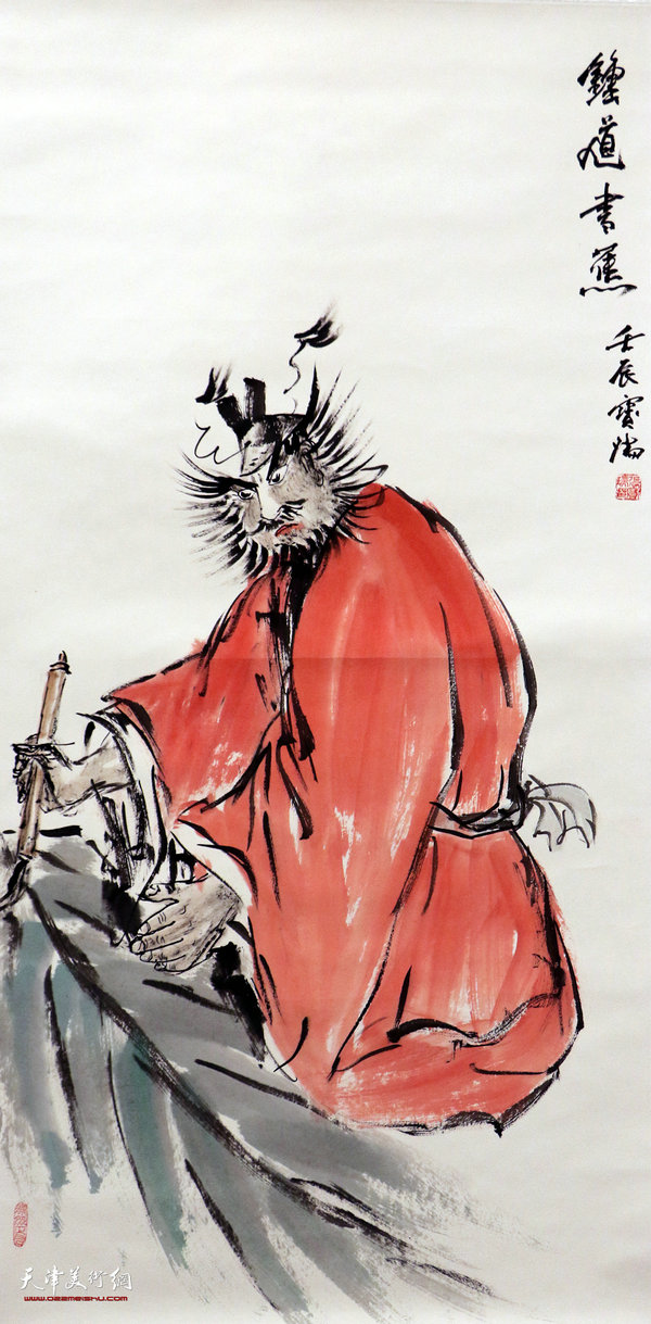 近年来,张宝瑞创作了2000多个形象各异的钟馗和达摩形象;海南海口五公祠、山东日照光明寺、安徽九华山佛教圣地、河南信阳灵山寺、北京朝阳禅寺等处都留有他写的大匾、木刻对联或书画作品。开展式上,张宝瑞先生表示;“钟馗是老百姓喜闻乐见的人物,他弘扬正气,驱魔辟邪,是正义的化身。我从小就喜爱这个人物。20年来拿起画笔画了上千个姿态各异的钟馗画作,还创造了钟馗与老子谈道、与孔子说儒、与李白狂饮、与苏东坡赏砚、与蒲松龄评鬼、与曾国藩议政等新的形象。”