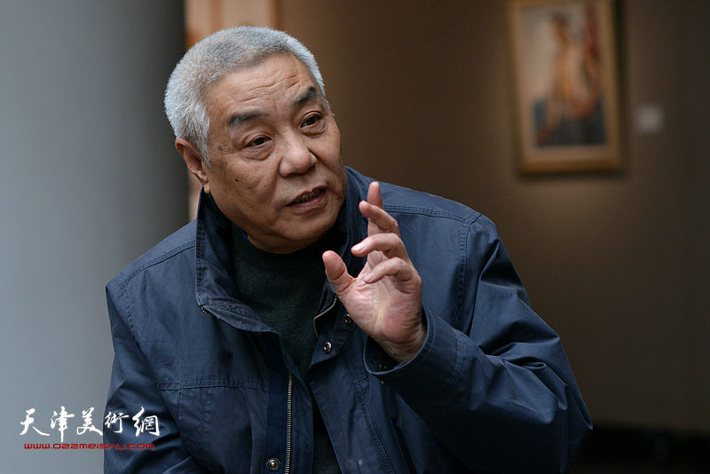 张京生在边秉贵艺术作品展上接受网络媒体采访。