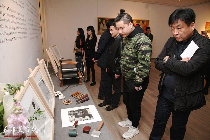 李旺与杜耕等在画展现场。
