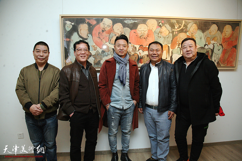 李旺与马彪、顾文忠、张金鹏、刘彤在画展现场。