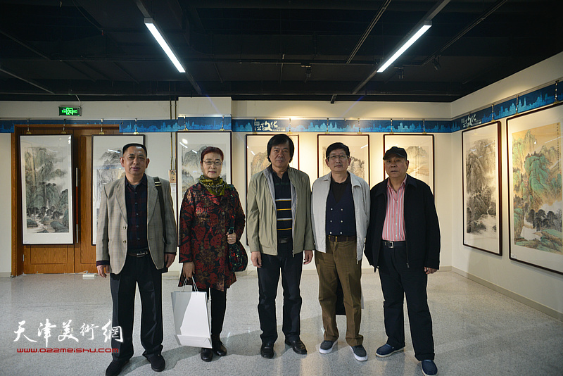 左起:张春蕾、李增亭、陈学周、王惠民、李根友在画展现场。