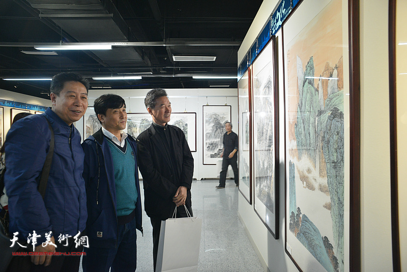 李毅峰、郭凤祥、马俊卿、陈莉在画展现场观看作品。