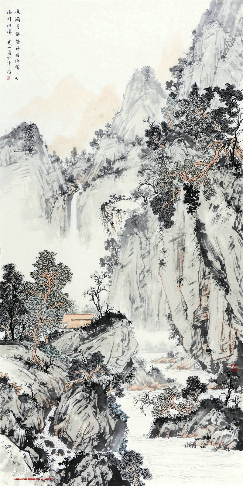 喻建十-溪涧岂能留得住,终归大海作波涛68x138cm