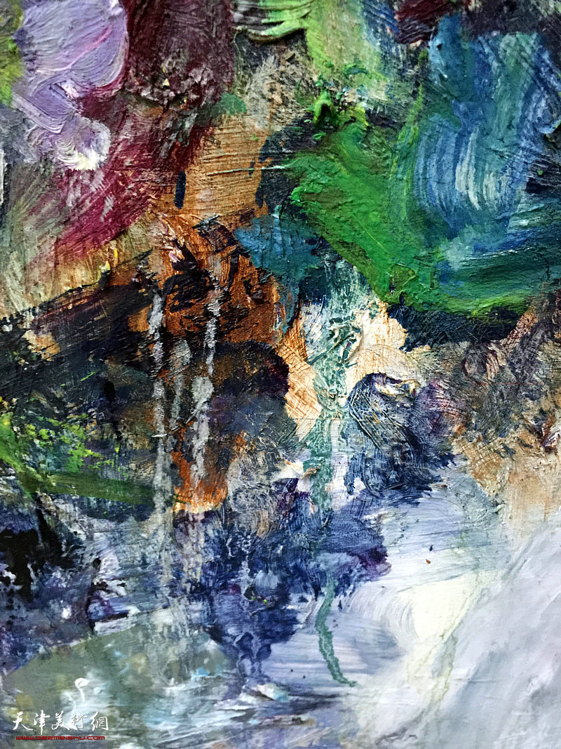 赏读焦小红的油画作品,首先是强烈的感官刺激,而后是心灵的愉悦。色彩艳丽而不媚俗,笔触狂放而不失法度。即有形又无形,实实虚虚,似是而非,扑朔迷离,穷其手段,不遗余力以物写我。把画画到这境界的确是很难的。国画大师李可染先生曾经说过“可贵者胆”。这话用在任何艺术门类都是一样的。在我近期见过的中国油画作品中,胆气最足的非焦小红莫属。胆气是画家们始终在自我培养和追求的内在气质,是浩气。但没几个能够达到,就连李可染先生最终还是理智战胜了胆气。我对胆气的理解是被压抑过久的情感释放,被压抑的越久它的爆发力也就越强。修养和技法是修炼和培育出来的,胆气不是。我画了几十年的画了,没闲着,一直在追求胆气,一看焦小红的画,立马崩溃。