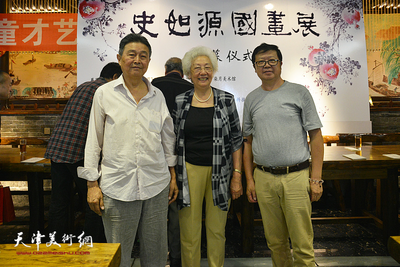 左起:赵毅、赵秀君、萧珑在画展开幕活动现场。