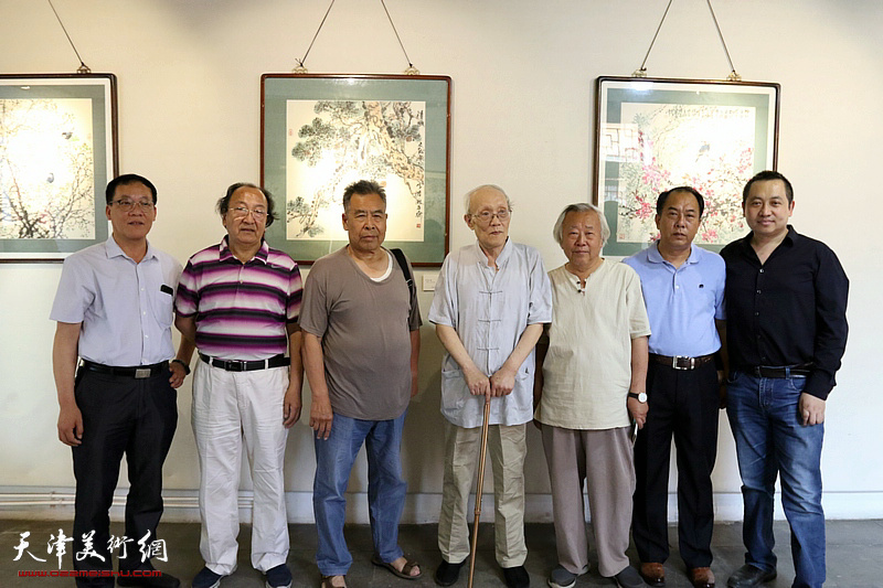 左起:顾文忠、王之海、赵树松、孙长康、阮克敏、霍亮、史庆生在画展现场。