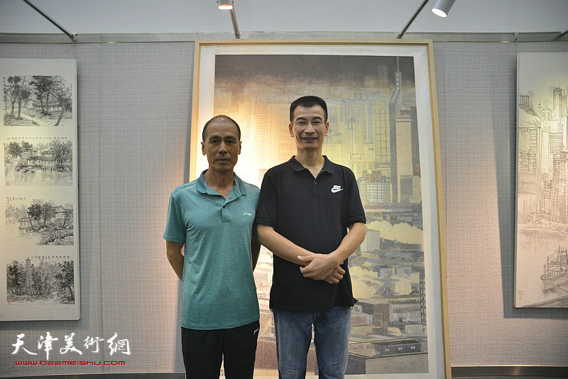 五位画家是城市画派的核心成员,长期关注城市的发展与历史变迁。魏瑞江的都市水墨作品诗情画意般地讲述着城中城的故事。他的水墨画中,避开了喧嚣,躲开了拓象,寻觅树影婆裟中的楼影,找寻窗门里阶梯上的故事,用诗意的眼,诗意的心体悟其中似聚似散的韵味。那夕阳中风韵绰约的金色一抹,那微风中飒然作响旧巷深处的老绿枝干,和那空阶无人石缝里曾经的革履声声。魏瑞江的作品恰恰是通过水墨表现出了城市的色彩斑斓。对此,天津师范大学艺术学院教授姜金军道出了其中缘由。他说,色彩不是必须通过颜色才能表现出来的,素描、白描同样可以表达出另类的色彩感觉。魏瑞江老师有着深厚的水彩画基础。他用水墨表现出色彩的感觉,在水彩、水粉、水墨之间徘徊过渡,自在从容。