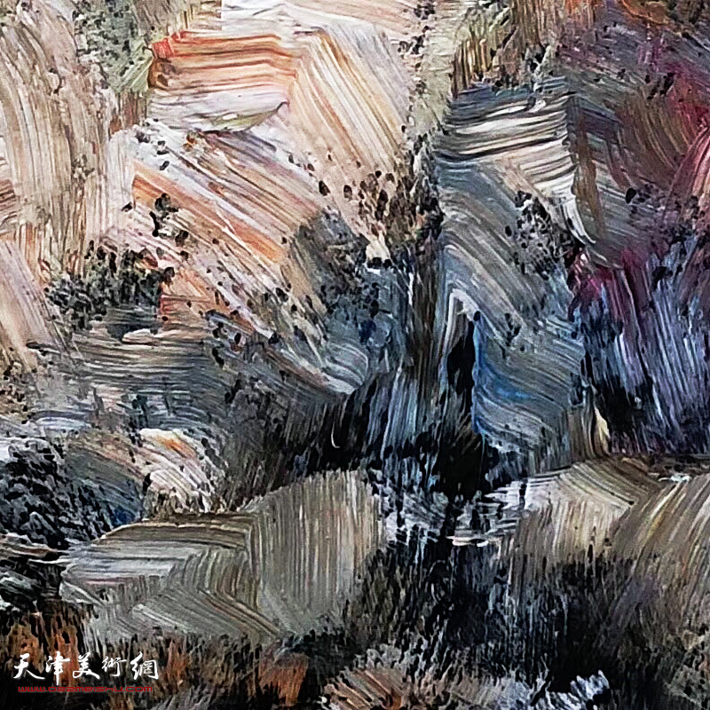 郝跃先的艺术作品色彩丰富,是当代艺术思维与审美意识的表现,观看郝跃先的作品带给人潇洒奔放、充满色彩的视觉感受。他的作品技法独特,多选用丙烯颜料在纯铝板上绘画,使画面呈现出非同一般的肌理和斑驳厚重的视觉效果。其绘画过程是一种挣脱绘画表面形式的束缚,进入到精神自由流动的享受。观郝跃先的画,从无限宽广的宇宙到细微的荷花个体,从现实景物至梦想空间,会被画中的气韵所包容,画家激情挥洒地淋漓尽致。画家将自然界中的色彩、光线,融汇为笔下的艺术元素。景物的固有色、自然环境中的光源色,画家寄身其中。艺术家用自己独特的审美之维描绘事物,将变化的一刻留在画面上,成为永恒。