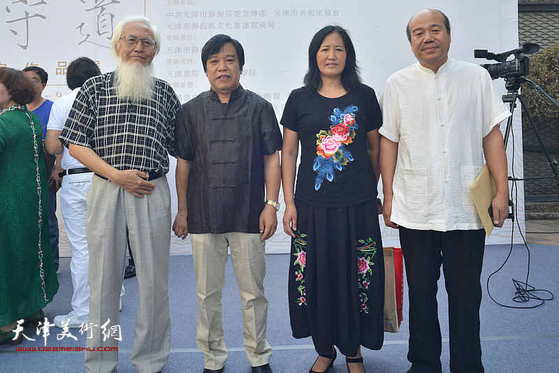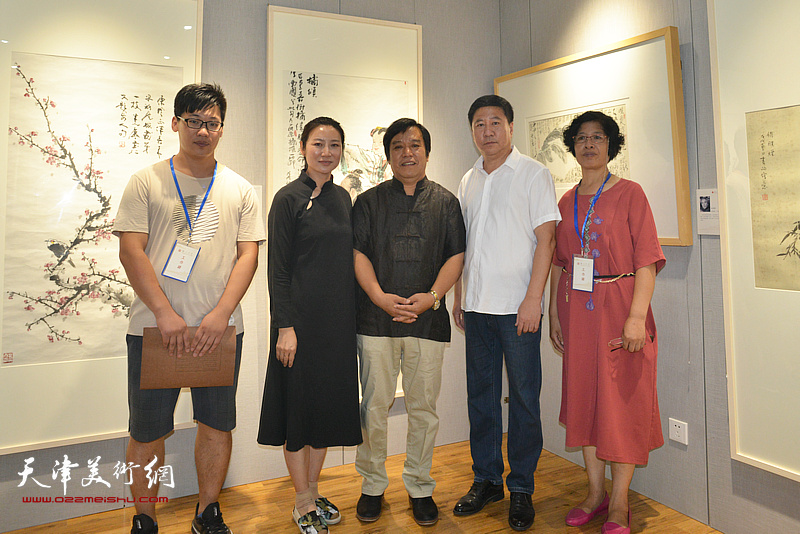 丁昉、甘长霖、甘长起、李庆增、赵红云在画展现场。