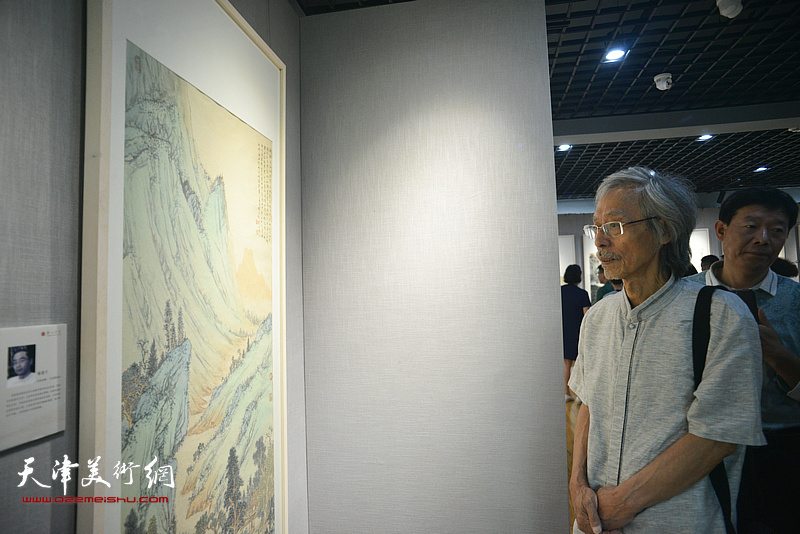 孙长康、陈福春、于振豹在画展现场观看画作。