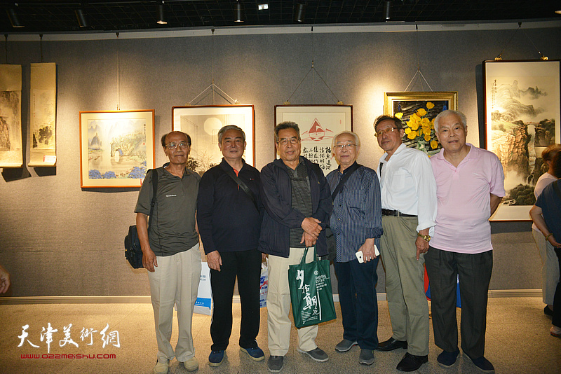 左起:赵英堂、房树常、白慧敏、阮克敏、刘季雨、只杏林、王春山在画展现场。
