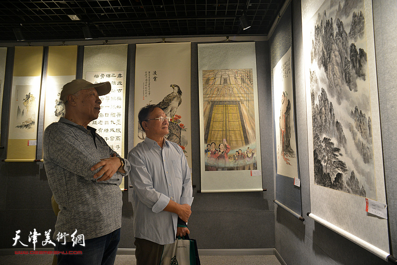 王书朋、耿尚武、顾颖芝等在欣赏展出的画作。