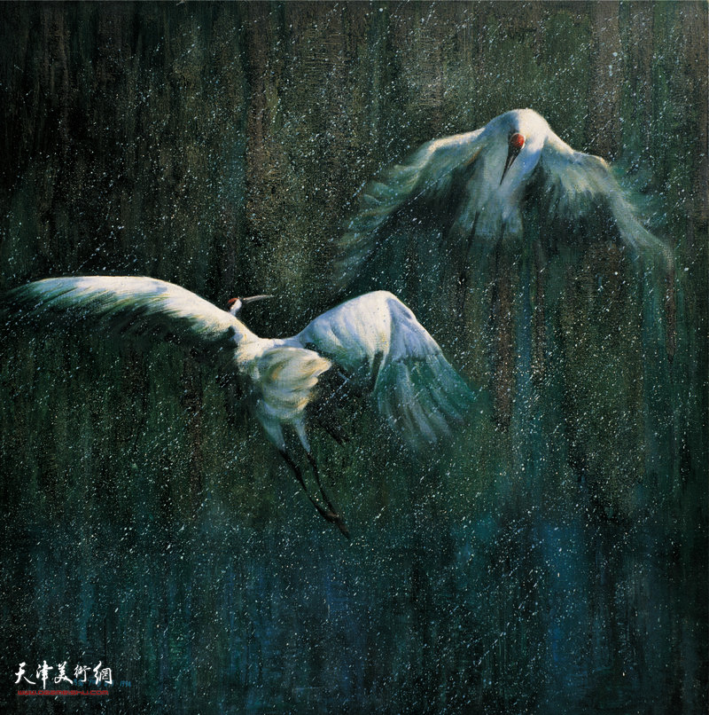 鹤舞 150cm×150cm 1994年 The Crane in Snow(1994)