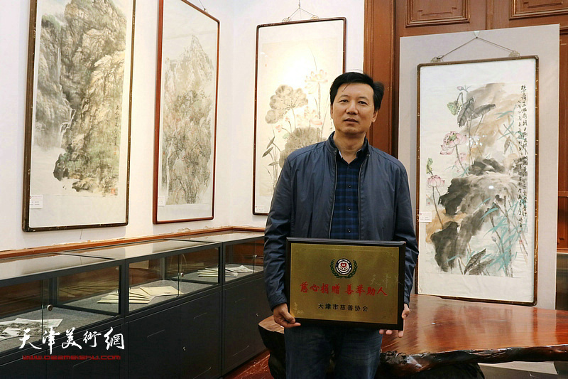 天津市美协、天津市书协、天津市书画艺术研究会、天津市法学会法治文化研究会向天津市慈善协会捐赠书画作品。
