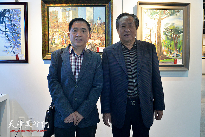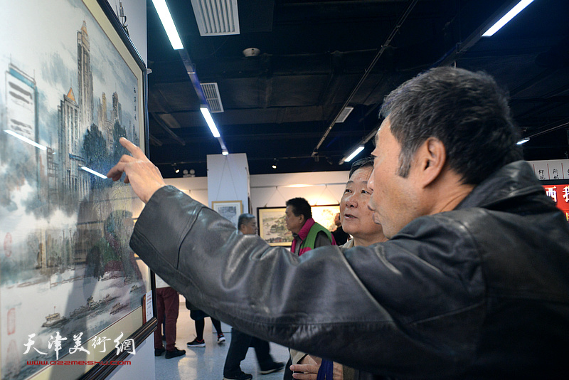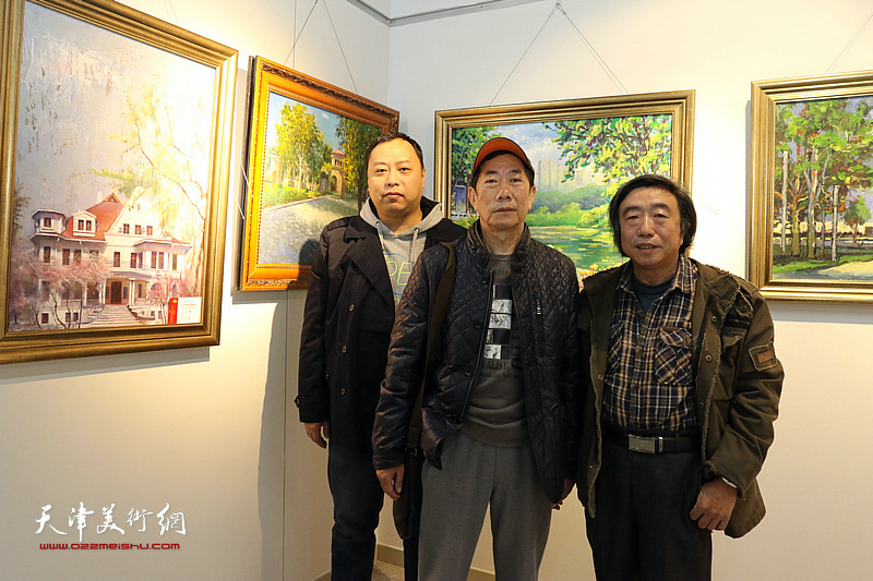 郭文伟、周志才、郑爱民、房国文等在画展现场。