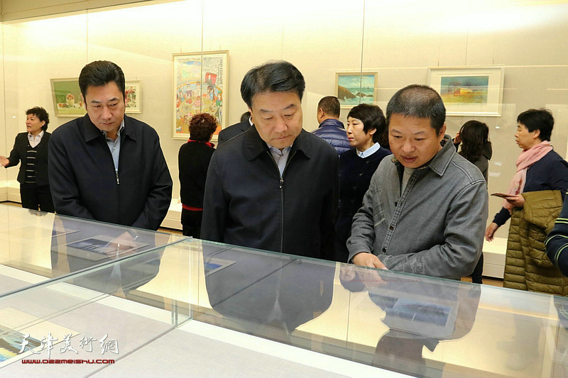 李学义、窦宝铁、魏瑞江等在展览现场观看作品。