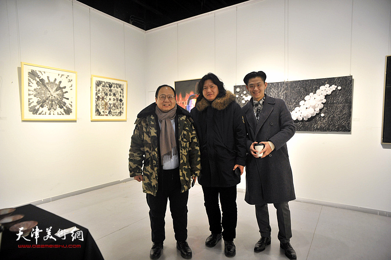 曹敬钢、李思哲、曹黎勇在画展现场。