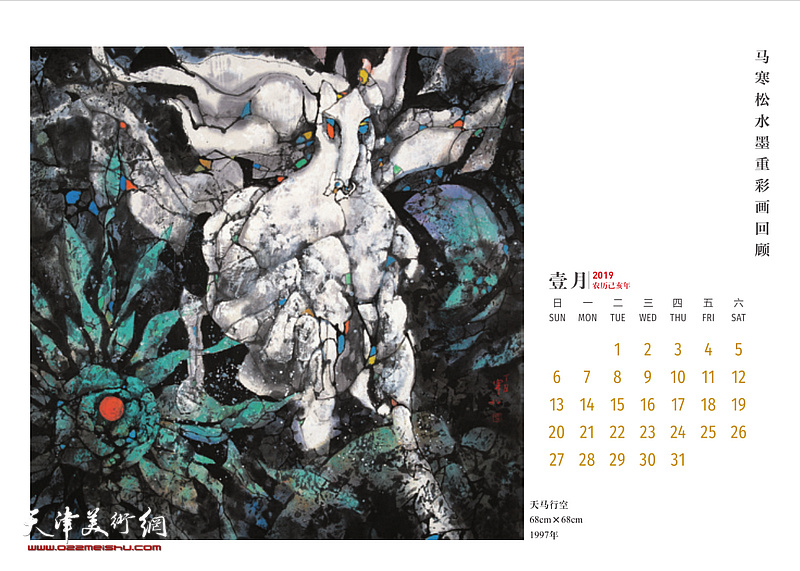 梦回神山-马寒松水墨重彩画2019农历己亥年台历 一月