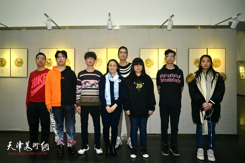 肖爱华与张尧、姜中立、王刚、阚传好、卢炀炀,以及学生们在画展现场。