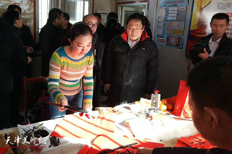 天津美术网讯 在2019年己亥新春佳节即将到之际,1月25日,共青团天津市委员会蓟州帮扶组组织青年书画家走进蓟州邦均镇国和庄、西门外村举行新春慰问贫困青少年家庭,给广大村民写春联送祝福活动。