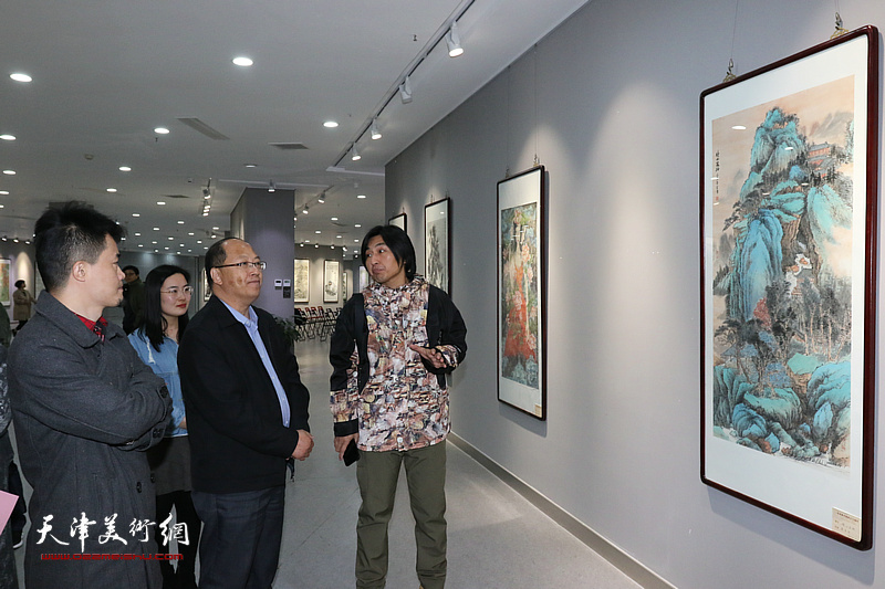 李国良、闫勇、范馨心、高嵩在画展现场观看作品。