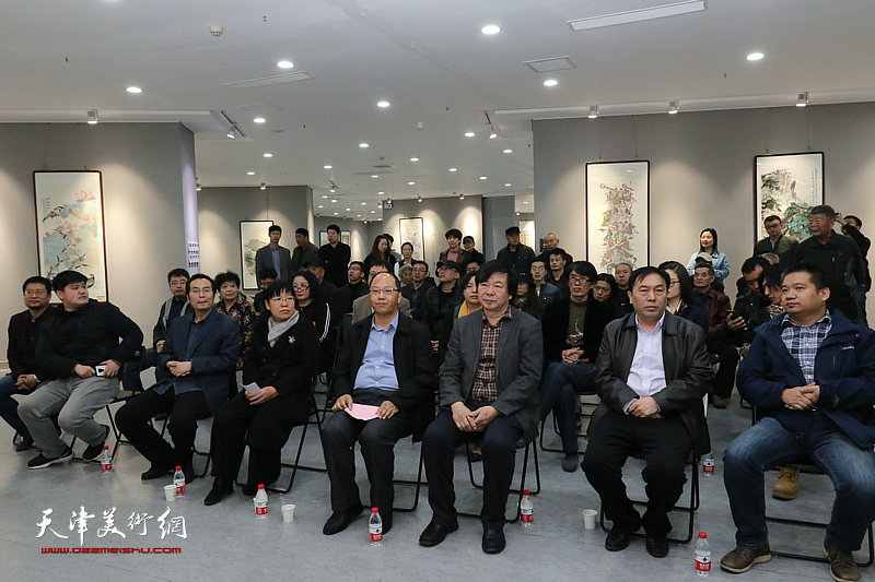 天津市美术家协会副主席史振岭,天津市东丽区委宣传部副调研员籍俊峰,天津市东丽区文化旅游体育局正处级调研员晋英俊,河北省艺术研究所副所长赵惠芬,东丽区文化馆馆长王祎,河北省艺术研究所书法美术研究室主任李国良,河北省艺术研究所助理研究员张彦斌,天津市群众艺术馆、青年画家姚铸,天津美院副教授、天津市书画艺术研究会山水画艺术研究院院长闫勇,天津美院讲师、青年画家李旭飞,天津美院讲师、天津市书画艺术研究会花鸟画艺术研究院院长白光,天津美院讲师、青年画家范馨心,天津现代职业技术学院副教授、青年画家王尉,河北省工笔画协会副秘书长、青年画家刘璐,南开大学滨海学院讲师、青年画家张存彪,天狮学院讲师、青年画家爱新觉罗·伯骧等出席了画展开幕活动。画展开幕仪式由东丽区文化馆美影部主任王霞主持。