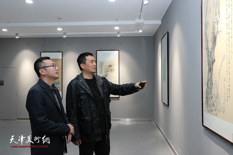 籍俊峰、赵惠芬、李国良、闫勇、刘璐等在画展现场观看作品。