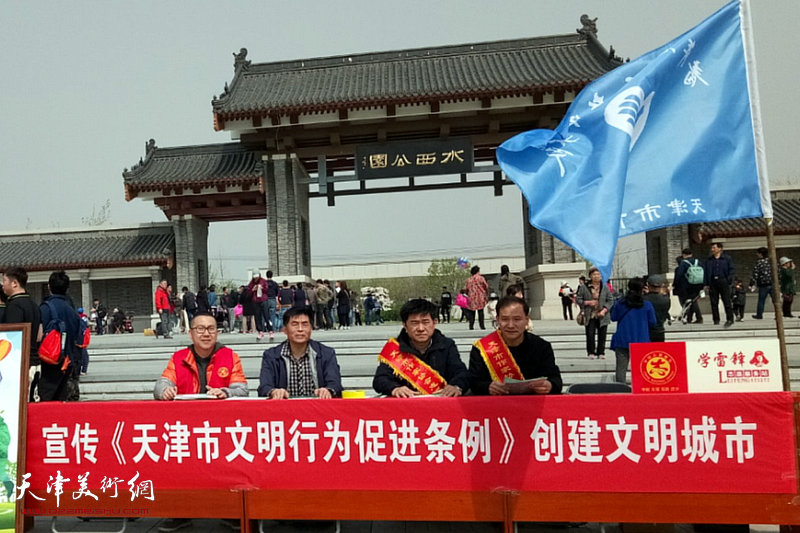 天津画院、天津市作协青年志愿者服务队走进水西公园开展宣传《天津市文明行为促进条例》创建文明城市主题活动。
