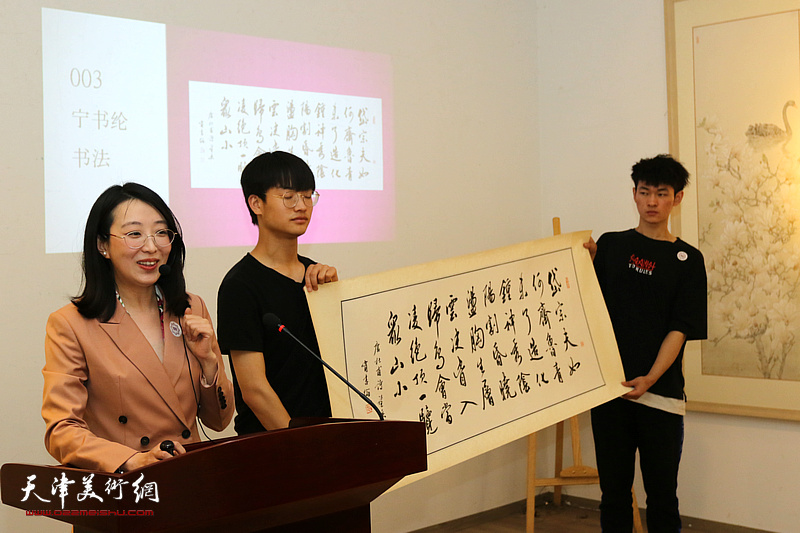 天津市政协原副秘书长、天津市教科文卫体事业发展促进会副会长兼秘书长于树香为百年南开艺术长卷开篇。