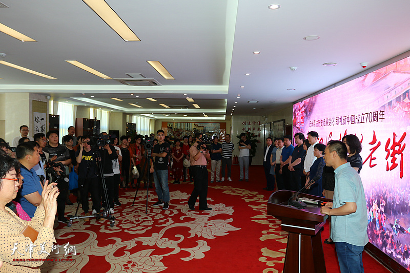 出席画展开幕活动的领导和嘉宾共同为“时代记忆 葛沽老街”王成油画展启幕。