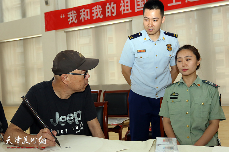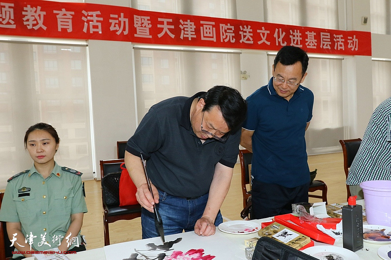 “我和我的祖国”主题教育活动暨天津画院送文化进基层活动走进西青区消防支队张家窝中队。