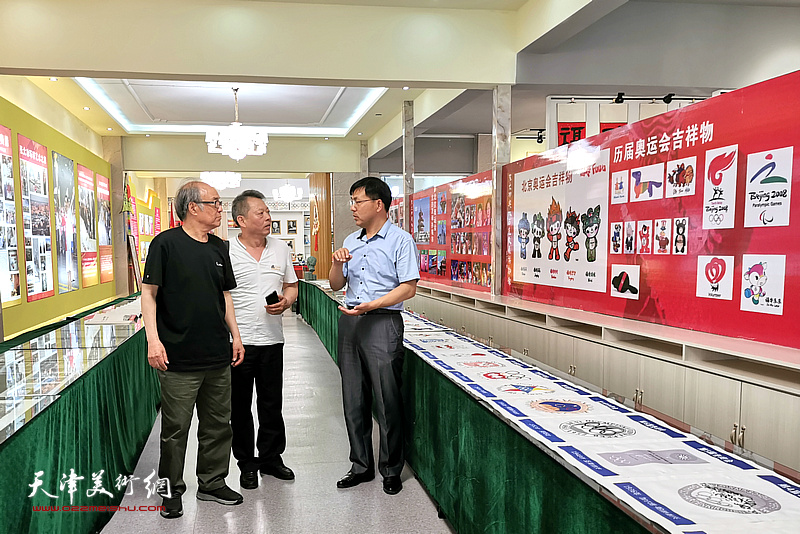 方海华向郭书仁介绍张大功奥林匹克收藏博物馆的情况。