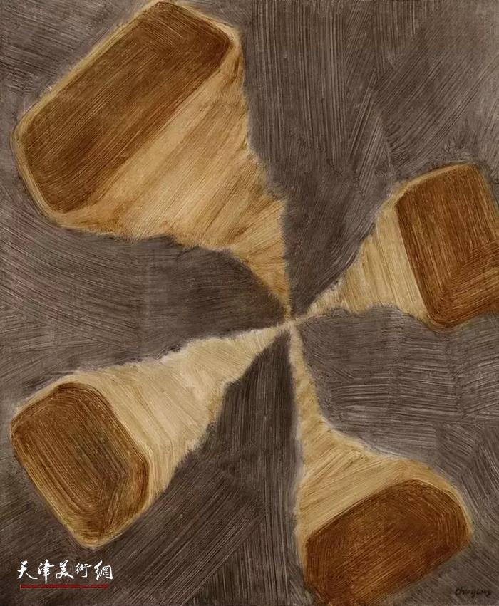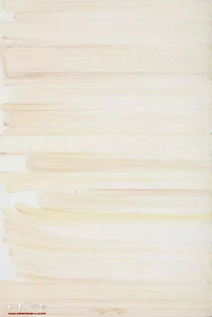 常隆的画油亦是如此,他虽采用西方的绘画语言,但作为一个受中华文化熏陶下成长起来的现代青年人,潜移默化的就带有了中国传统气质和鲜明的时代特点,在他的绘画作品中对于中国传统美学观的流露可见一斑。从大象无形、大音无声到真水无香。常隆的画中也处处体现对“淡”的追求。构图相对稳定,画面精简凝练,对于空间的有意排斥,使其画面的平面化特征明显可见;颜料覆盖很薄,与画布接触紧密,笔触走动非常肯定明显,在作品中甚至可以看到整个作画过程,用他自己的话说是“过程即结果”,是对其行为的记录;他的用色变化并不大,画面效果往往呈现出一种淡雅、朦胧,似像非像,似有似无的审美意象;在语言表现上则充满着形式意味,画中的内容大多也是由形式构成,用形式传递思想,将自己观察自然的视角转化成视觉形象进行展示,并试图感染、唤醒观众本性中“本有的那部分”,为观者提供了一个可思考空间。