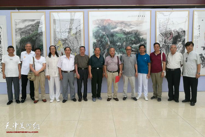 左起:张柏林、赵玉森、李根友、张葆东、郭凤祥、曹剑英、霍然、王金厚、郭书仁、钱桂芳、张玉明、王义常、翟鸿涛在画展现场。
