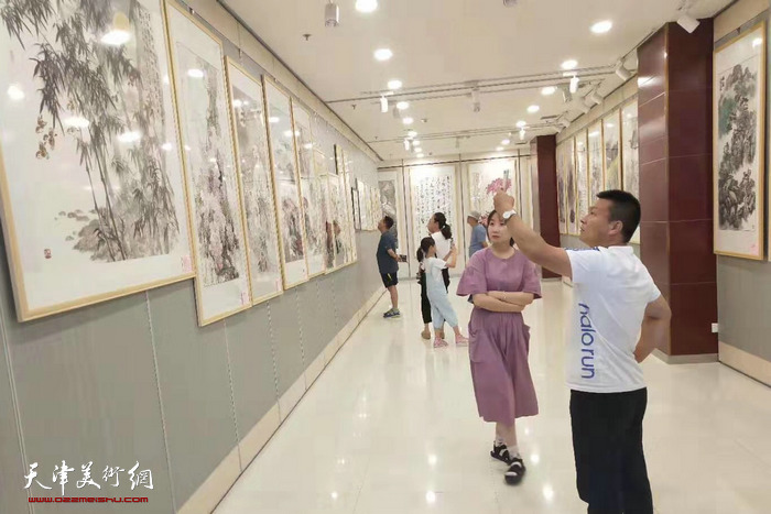 郭书仁、郭凤祥、崔燕萍、刘士忠、张玉明、翟鸿涛等在画展现场观看作品。