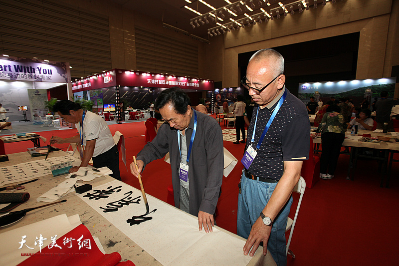 作为展览内容的一部分,为让书画艺术成为文化和旅游沟通的桥梁,中国楹联书画院50余位书画家齐聚N7馆,现场挥毫泼墨,即兴创作,一幅幅令人赏心悦目的书画作品吸引了众多美术爱好者前来观摩、拍照。