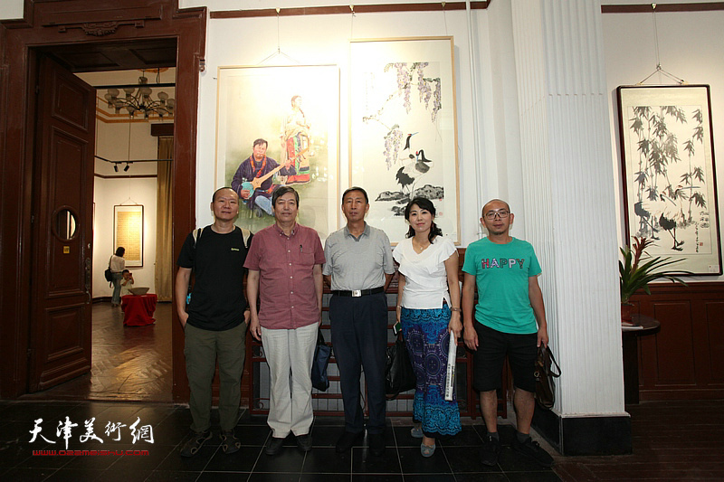 左起:吕大江、李耀春、张春雨、李响、徐文汉在展览现场观看作品。