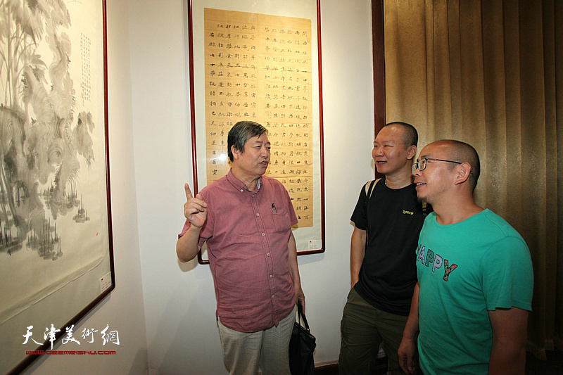 左起:陈元龙、何成、阚传好在展览现场观看作品。