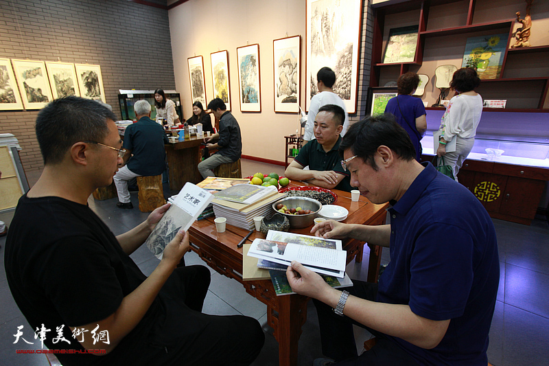 吴亚力、张旭在画展现场观看高杰画册。