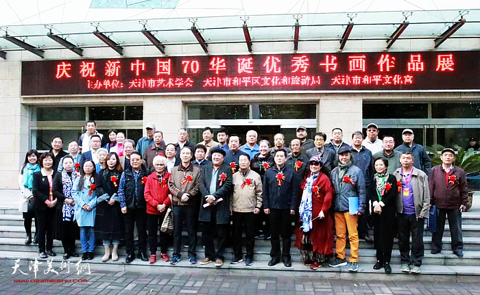 天津美术网讯 天津市艺术学会暨天津市和平区文化和旅游局、天津市和平文化宫联合主办的“庆祝新中国70华诞优秀书画作品汇展”于10月14号在和平区文化宫启幕。本届展出作品题材广泛,形式多样。绘画中西兼具,书法风格各异,工艺造型巧夺天工装饰绘画立意新颖,真可谓“有美皆备,无丽不臻”。