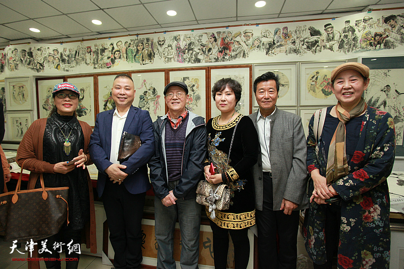 左起:武颖萍、尚金声、曹秀荣、陈世建、刘建平、祁宜选在画展现场。