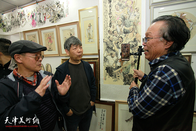 天津华侨画院陈幼白、卢东升、王冠铎走进鼓楼北街鹤艺轩框业开展书画交流