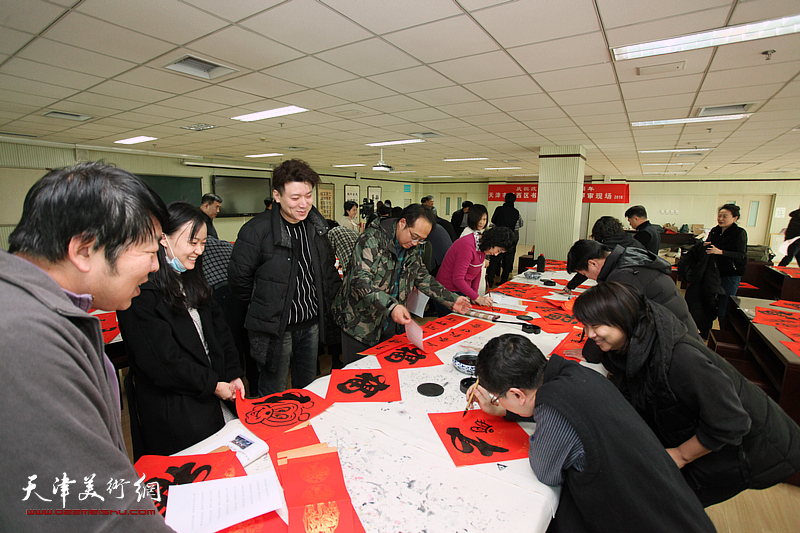 天津美术网讯 12月26日下午,由河西区书法家协会、天津市书法家协会楷书委员会、教育委员会、女书家委员会部分书家组成的“红色文艺轻骑兵”小分队,走进河西年宫慰问一线教师,开展“‘我们的中国梦——同心同书 祖国新春好’送万福进万家新春送福志愿服务公益活动”,为辛勤的园丁送去新春祝福。