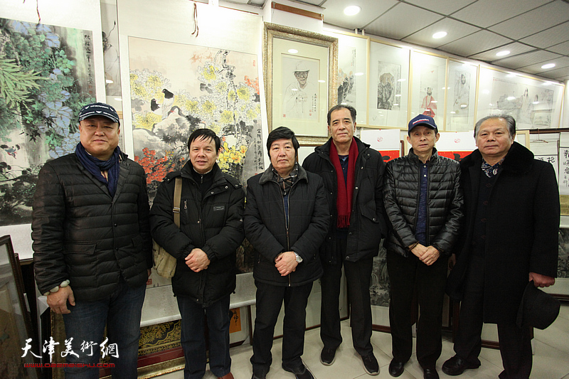 陈克昌、丁砚章、李建华、李嘉祥、田罡在画展现场。