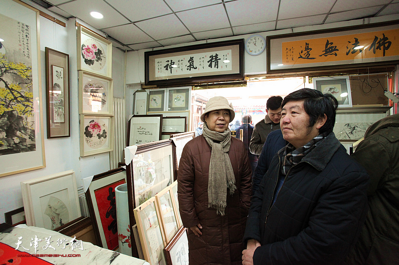王惠民与吕爱茹在画展现场。