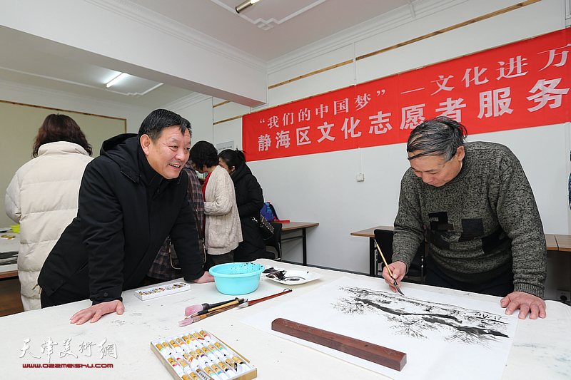 开幕仪式后,“我们的中国梦”——文化进万家静海区文化志愿者服务队挥毫创作,创作了一批书画作品,用于支持静海区社区文化建设,受到了广大美术爱好者的热烈欢迎。