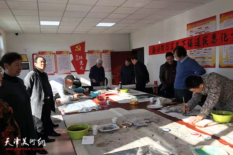 天津市美协山水画专委会赴独流镇开展书福送福文化下乡活动现场。