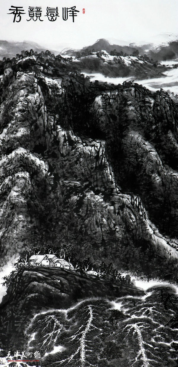 皮志刚先生作品《峰峦竞秀》 (著名书法家赵士英题款)。