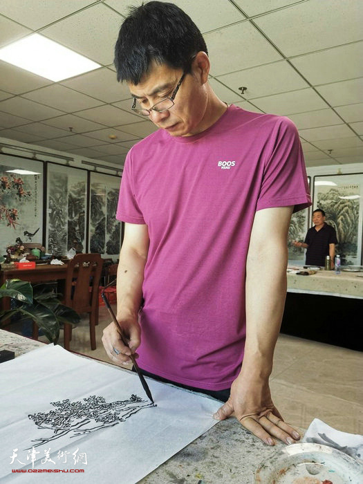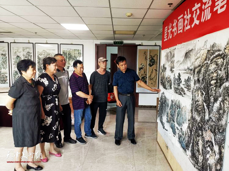 天津美术网讯 6月5日上午,画讯俱乐部星光书画社2020首场交流笔会在天津湾凯德写字楼举行。画讯俱乐部主任徐庆举、《画讯》主编柳河作为星光书画社的召集人出席了活动。石胜芹、张淑媛、李克、徐春江、韩旭等画家在现场创作、交流。由于参加此次活动的画家都主攻山水,故此次交流的主题是山水画创作。这也是新冠病毒疫情以来,星光书画社举行的首次活动。