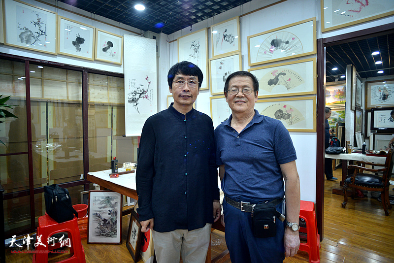 刘新尧与李学亮在画展现场。